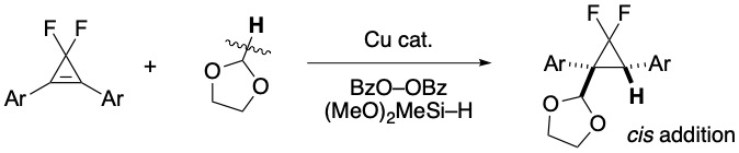 “gem-Difluorocyclopropane Synthesis by Copper-Catalyzed C(sp3)–H Addition of 1,3-Dioxolane to Difluorocyclopropenes”